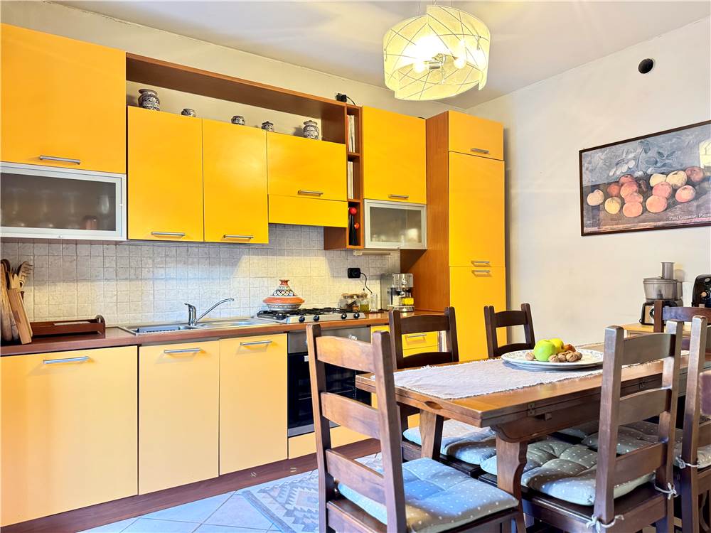 Il soggiorno con cucina a vista rappresenta il cuore della casa: uno spazio conviviale, ideale per momenti di relax in famiglia o per accogliere amici. La disposizione funzionale consente di organizzare al meglio arredi e zona pranzo, creando un ambiente armonioso e pratico.